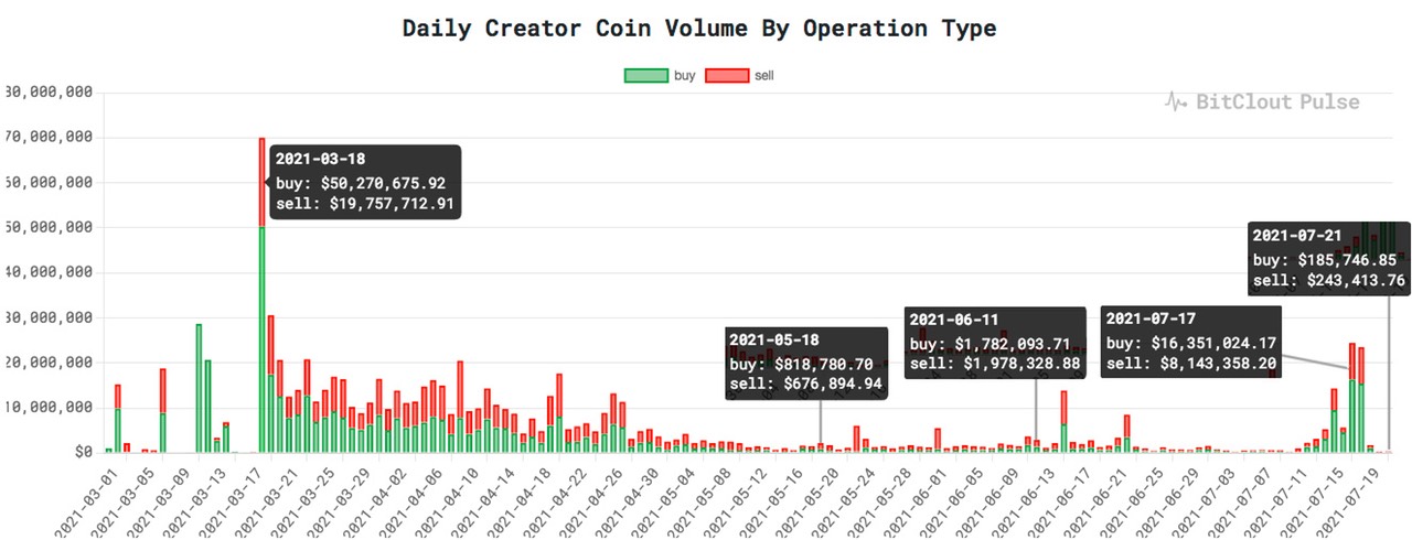 Stats show that Bitclout platform members have significantly slowed their purchases and sales of Creator Coins. After the euphoria at the beginning, people realized that you can lose money by buying without really having analyzed the situation. So people seem to be more cautious.