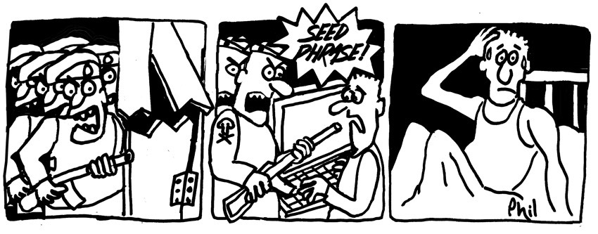 In the middle of the night, the police kick down my front door. They make me give my seed phrase. And I wake up.