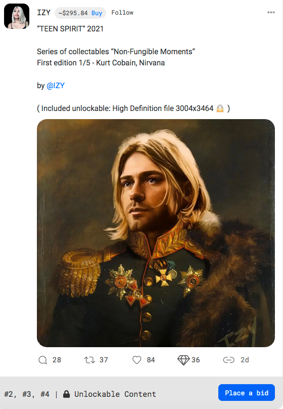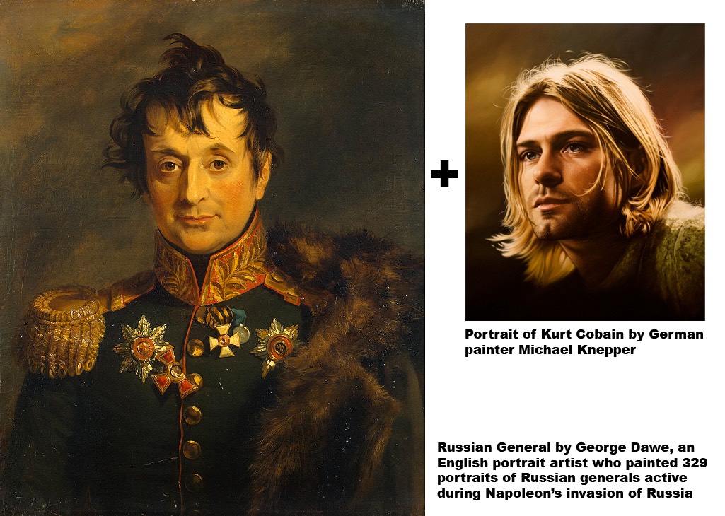 This NFT consists of two works: the portrait of a Russian general by the painter George Dawe (1781-1829), and the portrait of Kurt Cobain by the German painter Michael Knepper.